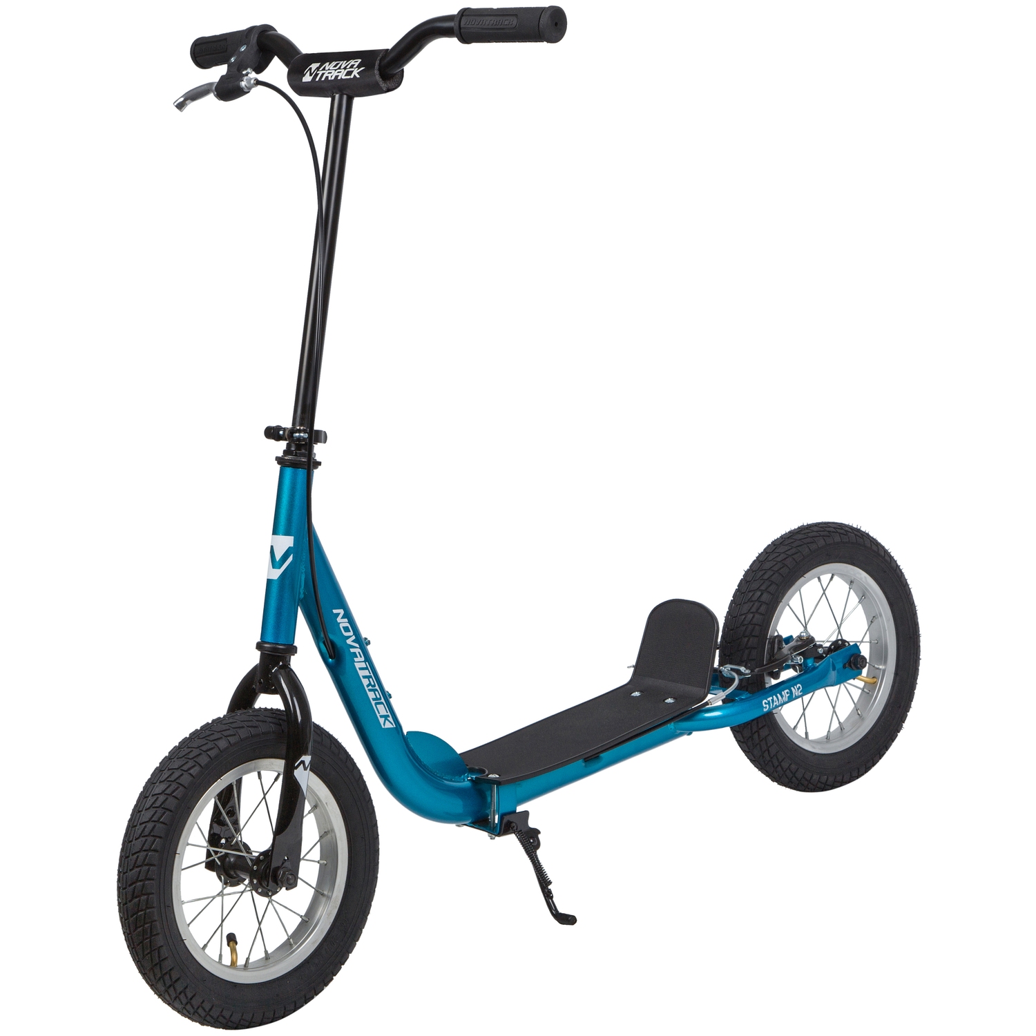Самокат Novatrack STAMP N2 порадует всех любителей активного образа жизни. Широкие надувные колеса диаметром 12 дюймов позволят кататься не только по асфальтовым дорожкам, но и с легкостью преодолевать парковые тропинки. Надежные передний и задний ручной тормоз обеспечивают безопасное торможение даже с очень крутой горки. Надувные колеса имеют ряд ощутимых преимуществ. Они бесшумны, с мягкими колёсами поездка будет мягче и комфортнее. Хорошо защищают от неровностей благодаря амортизирующим свойствам. Такие колёса комфортны при езде по неровным дорогам. В дождливую погоду надувные колеса увереннее держатся в поворотах. Они отлично тормозят и не скользят на разных поверхностях. Благодаря отличному сцеплению, помогают развивать более высокую скорость.