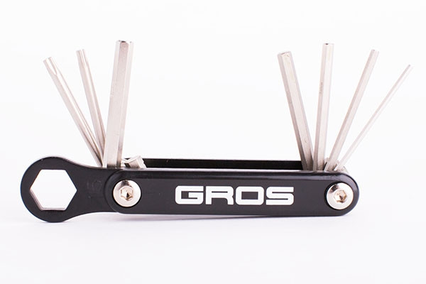 Складной набор с комплектом шестигранников, отверток и накидным ключом на 15мм для обслуживания втулок и демонтажа колес, оборудованных гаечным креплением.