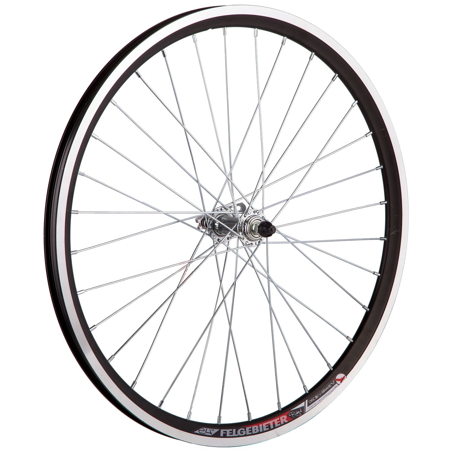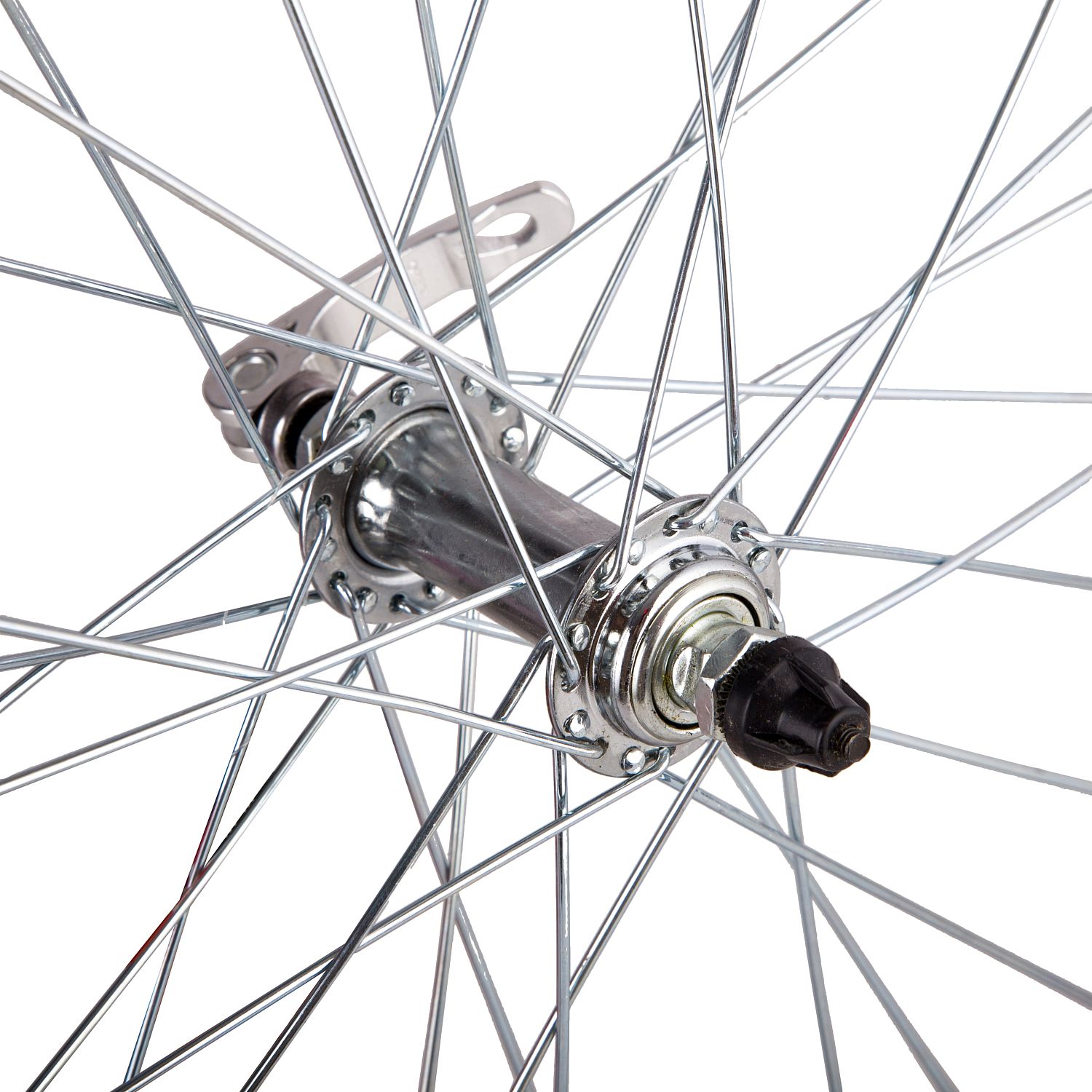 Колесо переднее 24 дюйма, одинарный алюминиевый обод. Количество отверстий под спицы - 32 шт. Втулка стальная на гайках.