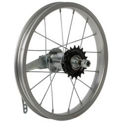Колесо 14" заднее в сборе(без резины) с одинарным алюминиевым ободом на 16 спиц со втулкой под гайку.