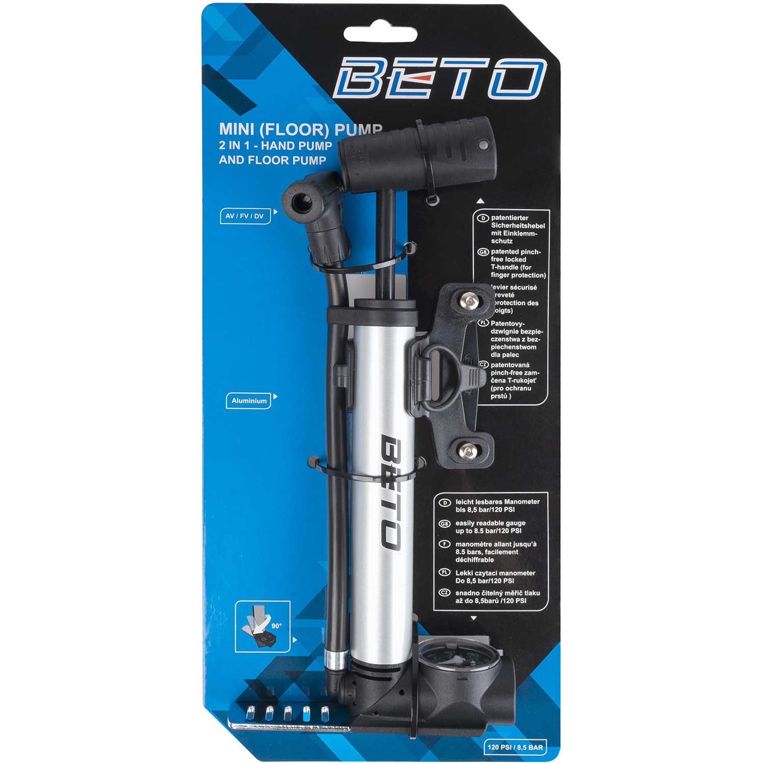 Велонасос BETO 5-470235 – функциональное и компактное решение для велосипедистов, которым важно быстро и точно накачивать камеры в любых условиях. Алюминиевый корпус, гибкий шланг на шарнире и эргономичная конструкция делают этот насос удачным сочетанием мобильности и эффективности. Благодаря складному ножному упору и Т-образной ручке создаётся комфортное рабочее положение, аналогичное напольным моделям.