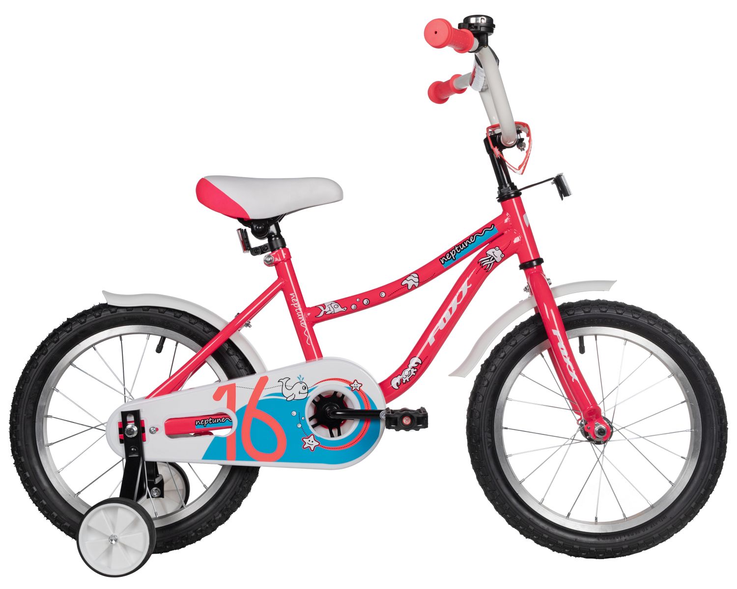 В комплекте с Foxx Neptune 16 идут стальные грязезащитные крылья, защита цепи и дополнительные боковые колеса, что делает этот велосипед идеальным спутником для первых приключений на двух колёсах.