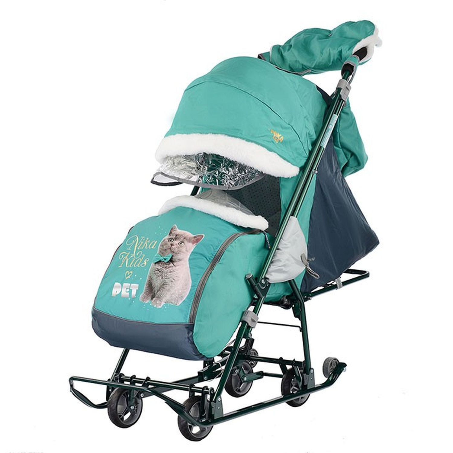 Функциональные санки-коляска - прекрасный транспорт для малыша в зимний период. Теплый чехол на ножки и складной капюшон надежно защитят от ветра, снега и мороза. В таких санках ребенку будет тепло и уютно. Санки очень удобны в эксплуатации. Тканевый чехол с утеплителем обладает прекрасными гигроскопическими свойствами. Спинка регулируется, так что малыш сможет с комфортом поспать во время прогулки. Также имеется муфта для мамы, чтобы возить санки было не холодно.