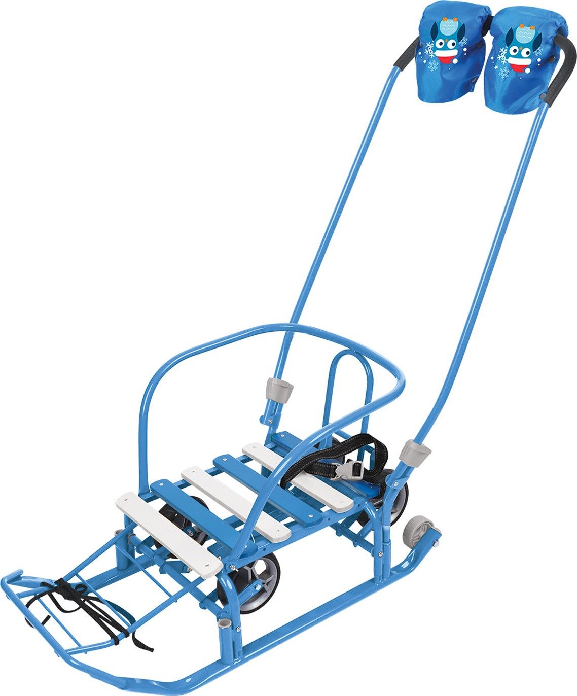 Санки детские Тимка 3К универсал, Т3КУР/Г, с рукавичками голубые представляют собой высококачественное и функциональное решение для зимних прогулок с детьми.