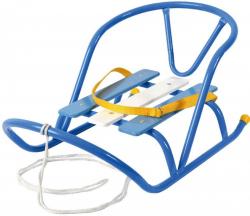 Спинка и полозья изготовлены из металла, сиденье из рейки.