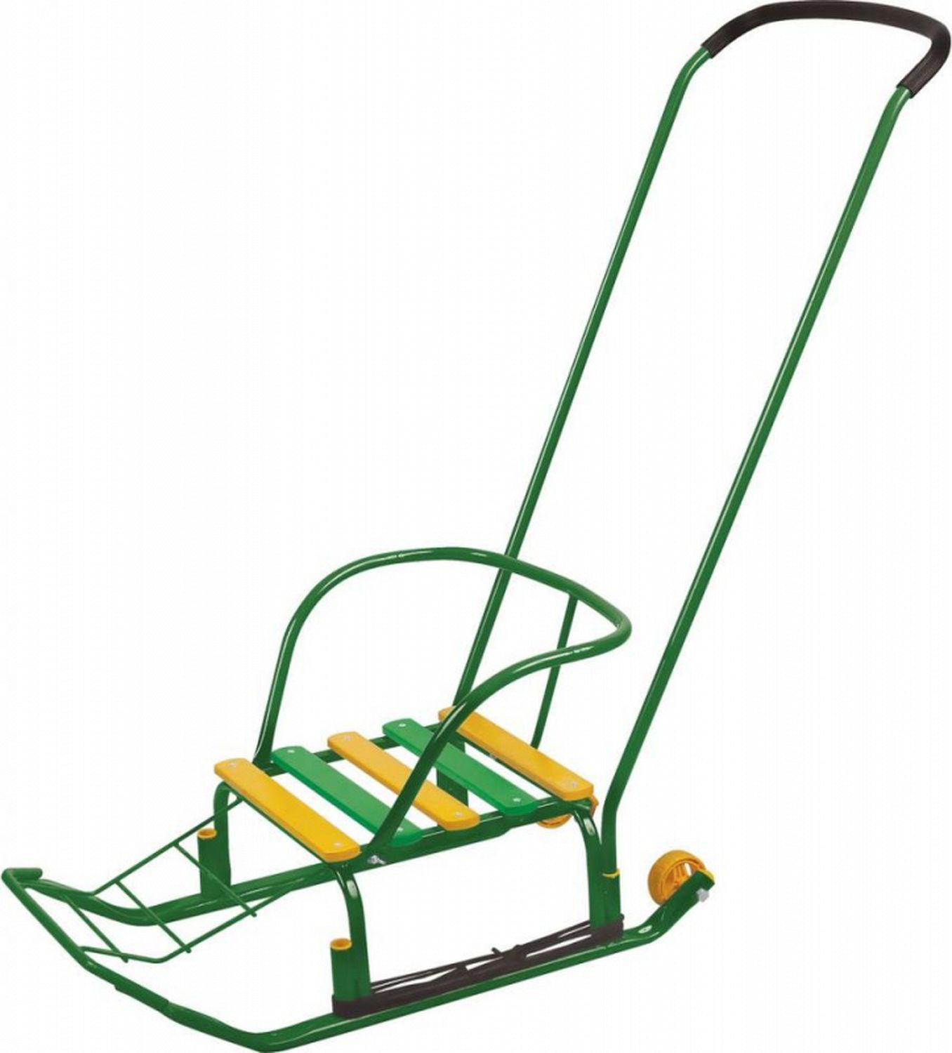 Какой же ребенок не хочет зимой мчаться на санках с горки? Детские санки – одно из главных зимних развлечений, возможность весело и активно провести время, а также удобное транспортное средство, позволяющее родителям ускорить передвижение по улицам. Это и отличный способ семейного отдыха: прокатиться с горы не откажутся даже взрослые. Практичные и удобные санки от российского производителя придутся по душе любому малышу. Они имеют прочный металлический каркас, удобную спинку и сиденье из деревянных реек. Впереди имеется подставка для ног и бампер, что исключает риск перевернуться. Санки оборудованы высокой ручкой для удобного перемещения. Ручка съемная. Также их можно передвигать и при помощи расположенной впереди веревки. Колеса позволят легко преодолевать бесснежные участки дороги или зайти в магазин. Санки можно доукомплектовать мягким сиденьем.