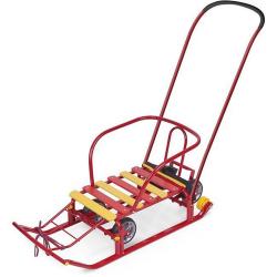 Какой же ребенок не хочет зимой мчаться на санках с горки? Детские санки – одно из главных зимних развлечений, возможность весело и активно провести время, а также удобное транспортное средство, позволяющее родителям ускорить передвижение по улицам. Это и отличный способ семейного отдыха: прокатиться с горы не откажутся даже взрослые. Практичные и удобные санки от российского производителя придутся по душе любому малышу. Они имеют прочный металлический каркас, удобную спинку и сиденье из деревянных реек. Впереди имеется подставка для ног и бампер, что исключает риск перевернуться. Санки оборудованы высокой ручкой для удобного перемещения. Ручка съемная. Также их можно передвигать и при помощи расположенной впереди веревки. Колеса позволят легко преодолевать бесснежные участки дороги или зайти в магазин. Санки можно доукомплектовать мягким сиденьем.