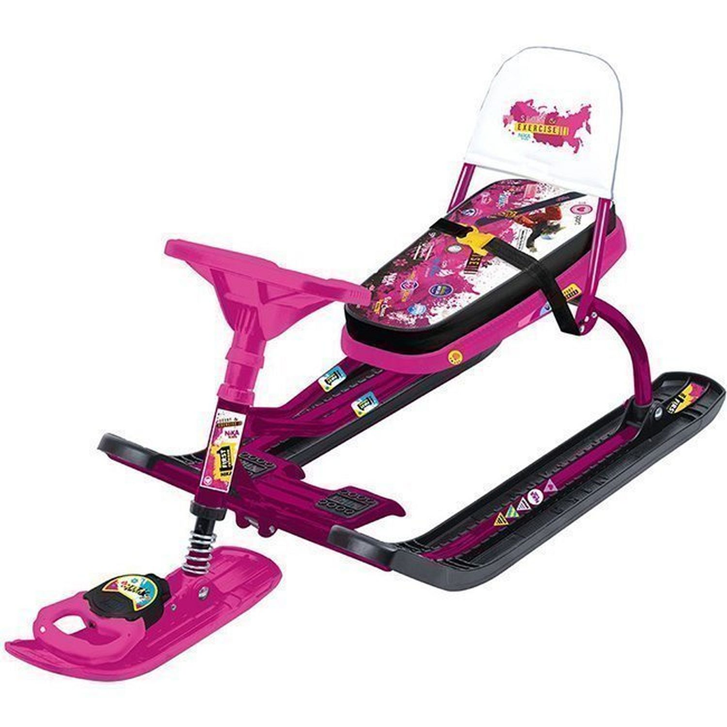 Какой же ребенок не хочет зимой мчаться на снегокате с горки? Детские снегокаты – одно из главных зимних развлечений, возможность весело и активно провести время, а также удобное транспортное средство, позволяющее родителям ускорить передвижение по улицам. Это и отличный способ семейного отдыха: прокатиться с горы не откажутся даже взрослые. Легкие и удобные снегокаты от российского производителя придутся по душе любому ребенку. Они имеют прочный металлический каркас, удобное сиденье и классическое расположение полозьев. Ребенок может управлять движением снегоката при помощи руля, который направляет ведущую переднюю лыжу. Также имеется прочная веревка с удобной пластиковой ручкой, при помощи которой снегокат легко перемещать. Снегокат имеет мягкое сиденье с принтом.