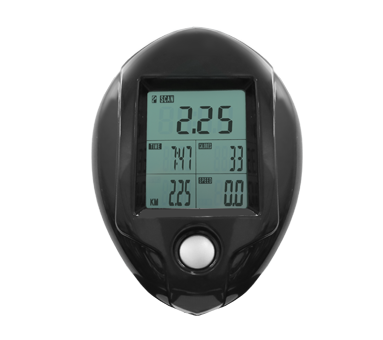 Показания консоли: время, дистанция, калории, скорость, об./мин., сканер