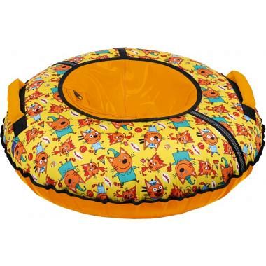Тюбинг с рисунком «Три кота» изготовлен из прочного тента, который устойчив к морозам до 28 градусов, все швы усилены капроновой лентой.