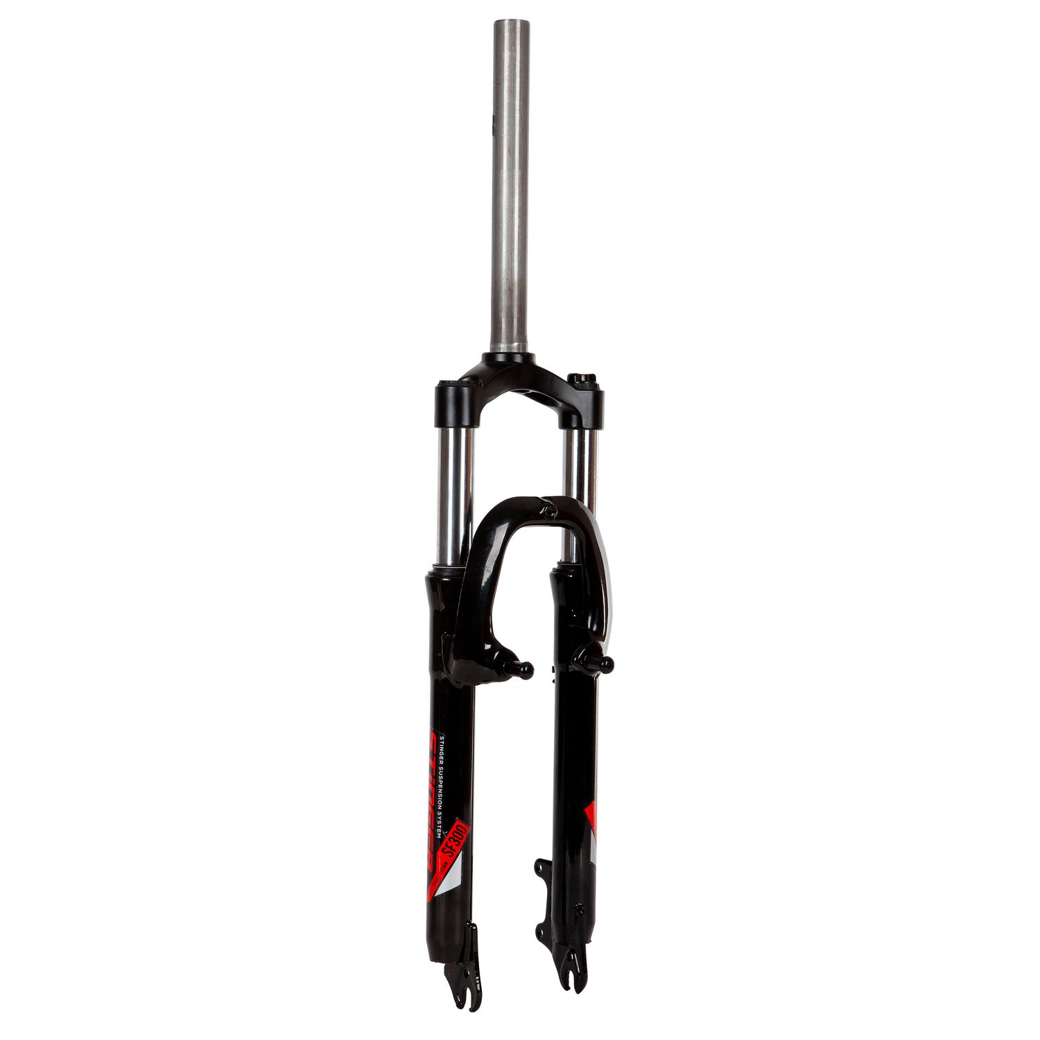 Амортизационная вилка Stinger под диаметр колеса 26. Стальной шток под диаметр 1-18 длинной 250 мм. Ход вилки 100 мм. Имеется крепление под дисковый и v-brake тормоза.